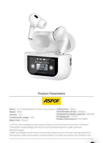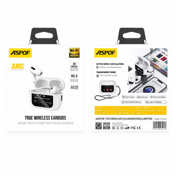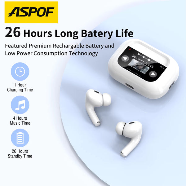 Αναβάθμισε την εμπειρία ήχου σου με τα ASPOF True Wireless Earbuds, τα πρώτα ακουστικά με έγχρωμη οθόνη αφής στο κουτί φόρτισης, που σου επιτρέπουν να ελέγχεις τη μουσική, την ένταση και το ANC χωρίς να ανοίγεις το κινητό.