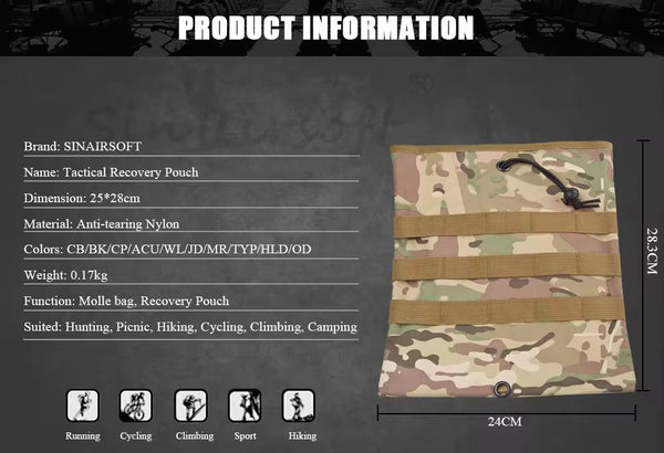 Η Tactical Dump Pouch MOLLE είναι μια ανθεκτική και πρακτική θήκη ανάκτησης γεμιστήρων και εξοπλισμού, σχεδιασμένη για airsoft, σκοποβολή, κυνήγι, hiking και tactical χρήση. Κατασκευασμένη από υψηλής ποιότητας 600D nylon, προσφέρει εξαιρετική αντοχή στη φθορά και στα σκισίματα.