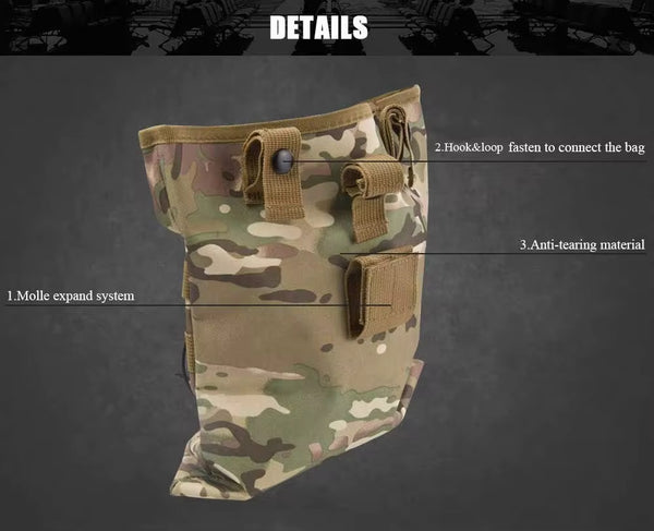 Διαθέτει σύστημα MOLLE για εύκολη προσαρμογή σε ζώνη, plate carrier, γιλέκο ή σακίδιο, ενώ το επάνω μέρος με κορδόνι σύσφιξης ασφαλίζει το περιεχόμενο κατά την κίνηση. Ιδανική για γρήγορη ρίψη γεμιστήρων, εργαλείων ή άλλου εξοπλισμού στο πεδίο.